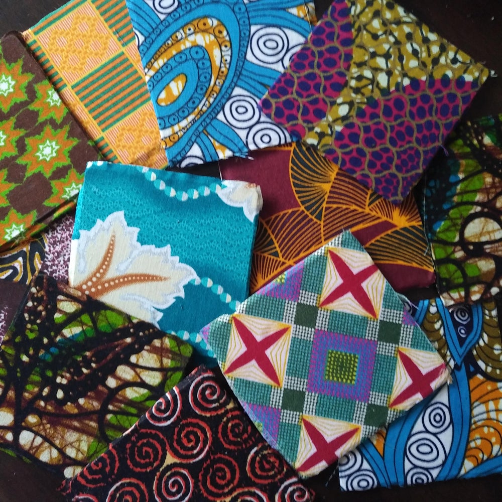 Mixed set of 25 African print coasters made in a variety of designs and colours by Detola & geek