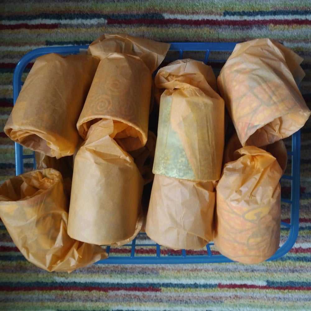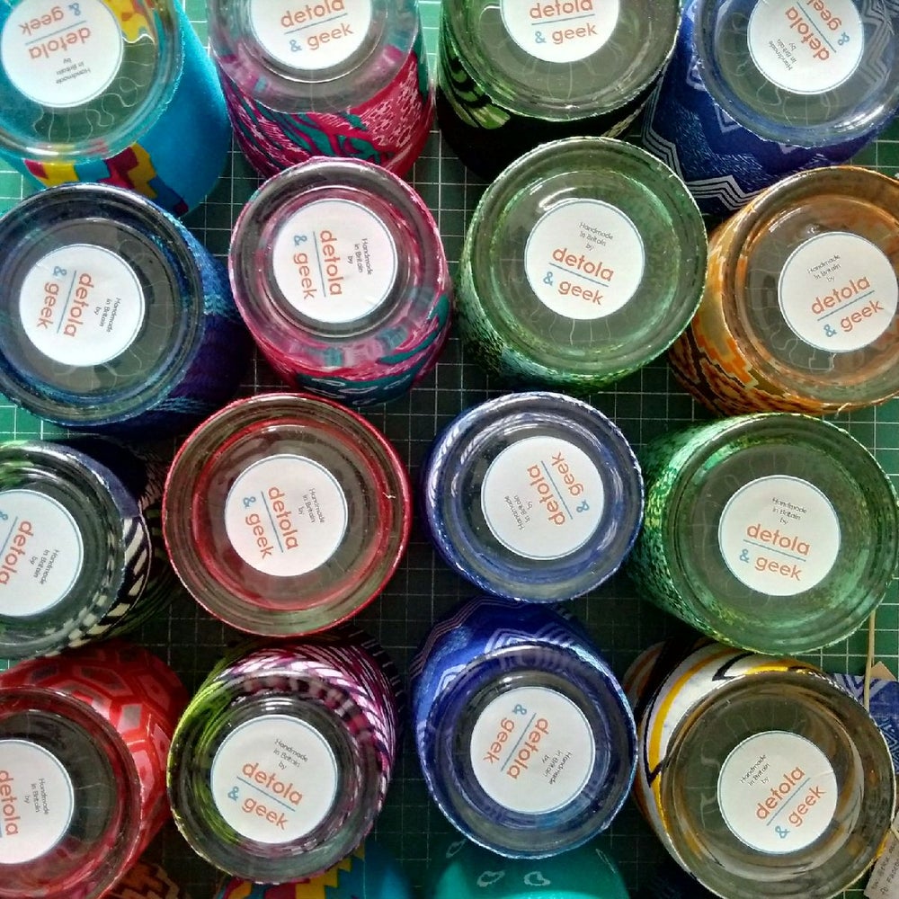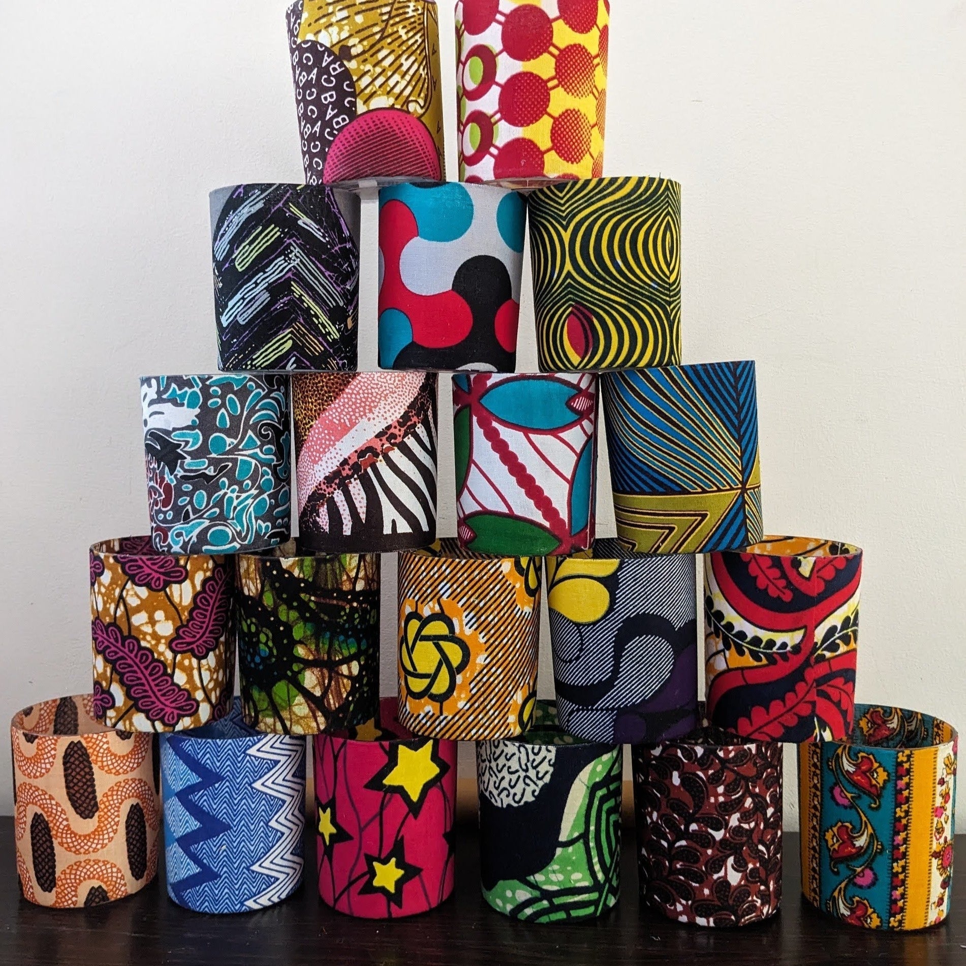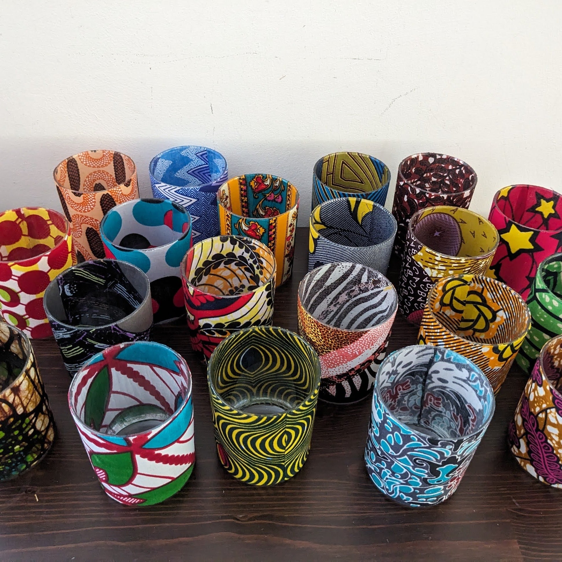 Mixed set of 20 African wax print patterned candle tealight holders.