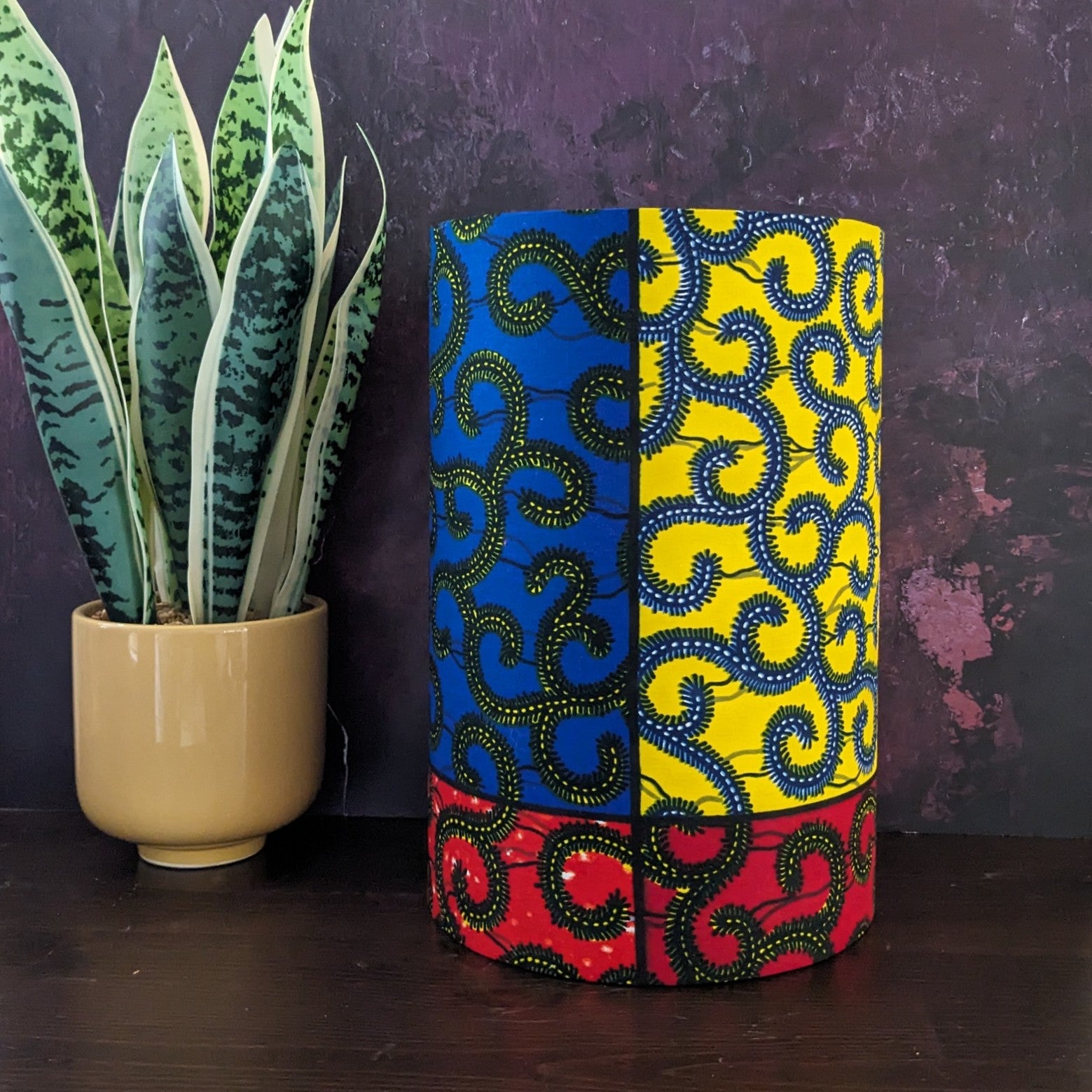 Botanical Vine Patterned African Lampshade: blue red yellow