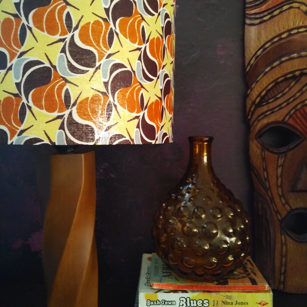 A coffee beans African print lampshade which will add warmth to any space it's placed in.