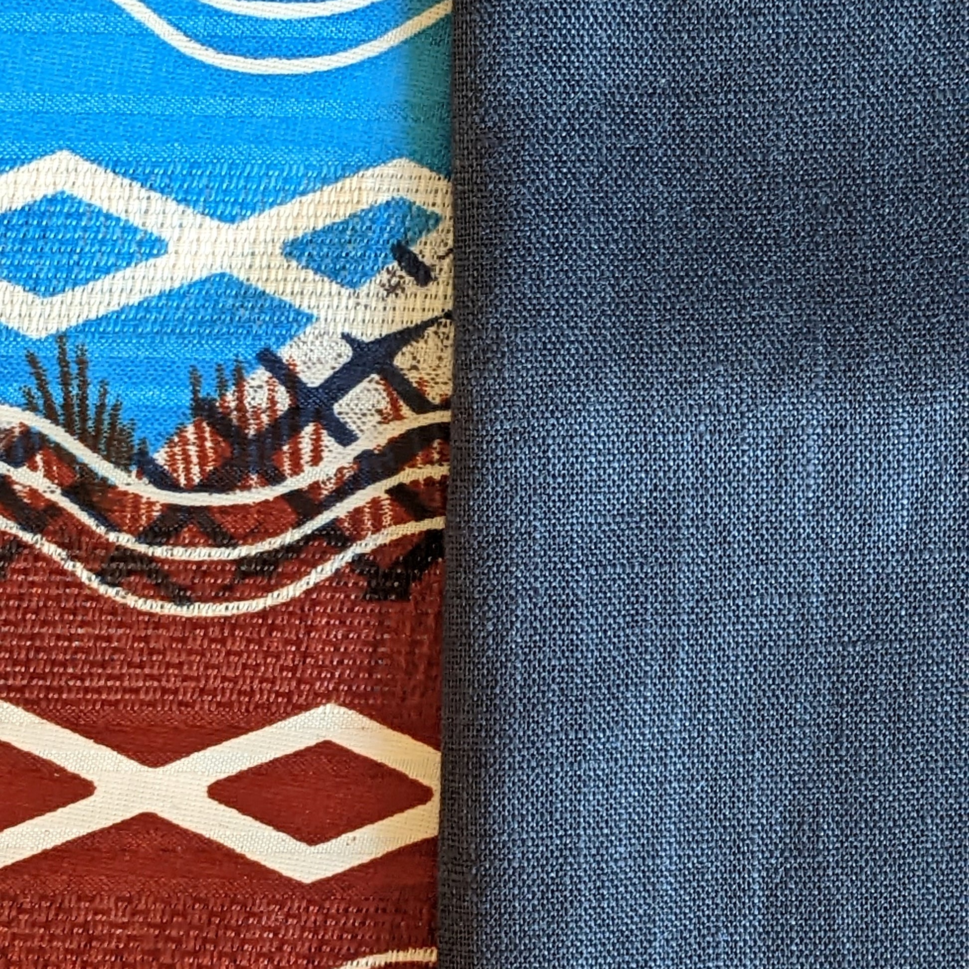 The top shade is made with a traditionally handcrafted Indigo blue multi-coloured tie dye fabric from Southwest Nigeria. The bottom shade is made with 100% linen fabric which picks it's hue from the least significant colour in the larger lampshade.