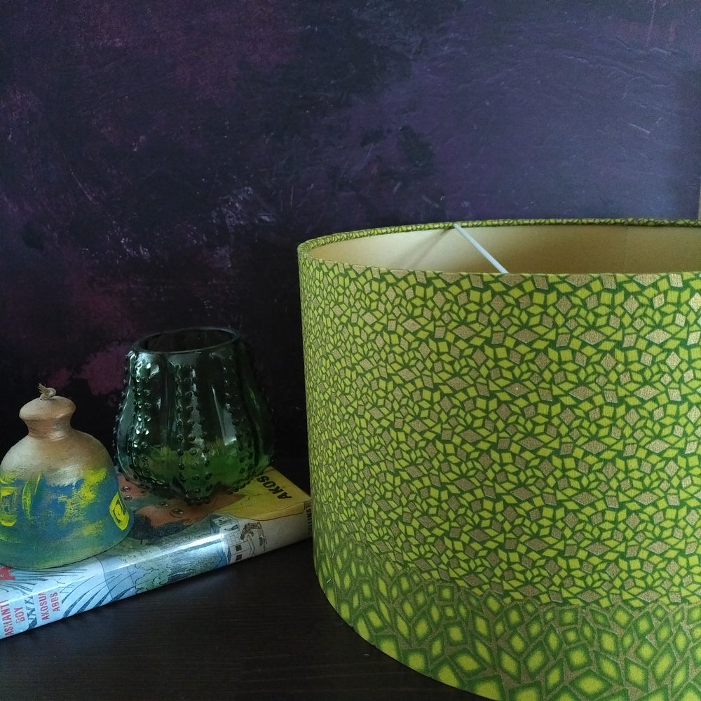 All my lampshades are made by hand and lined with flame-retardant PVC that has passed the Lighting Association's Glow wire test. We recommend you use low energy efficient light bulbs with our lampshades. Supplied with a 42mm standard European light fitting and a 29mm UK adaptor. All my products are made in a pet and smoke free studio!