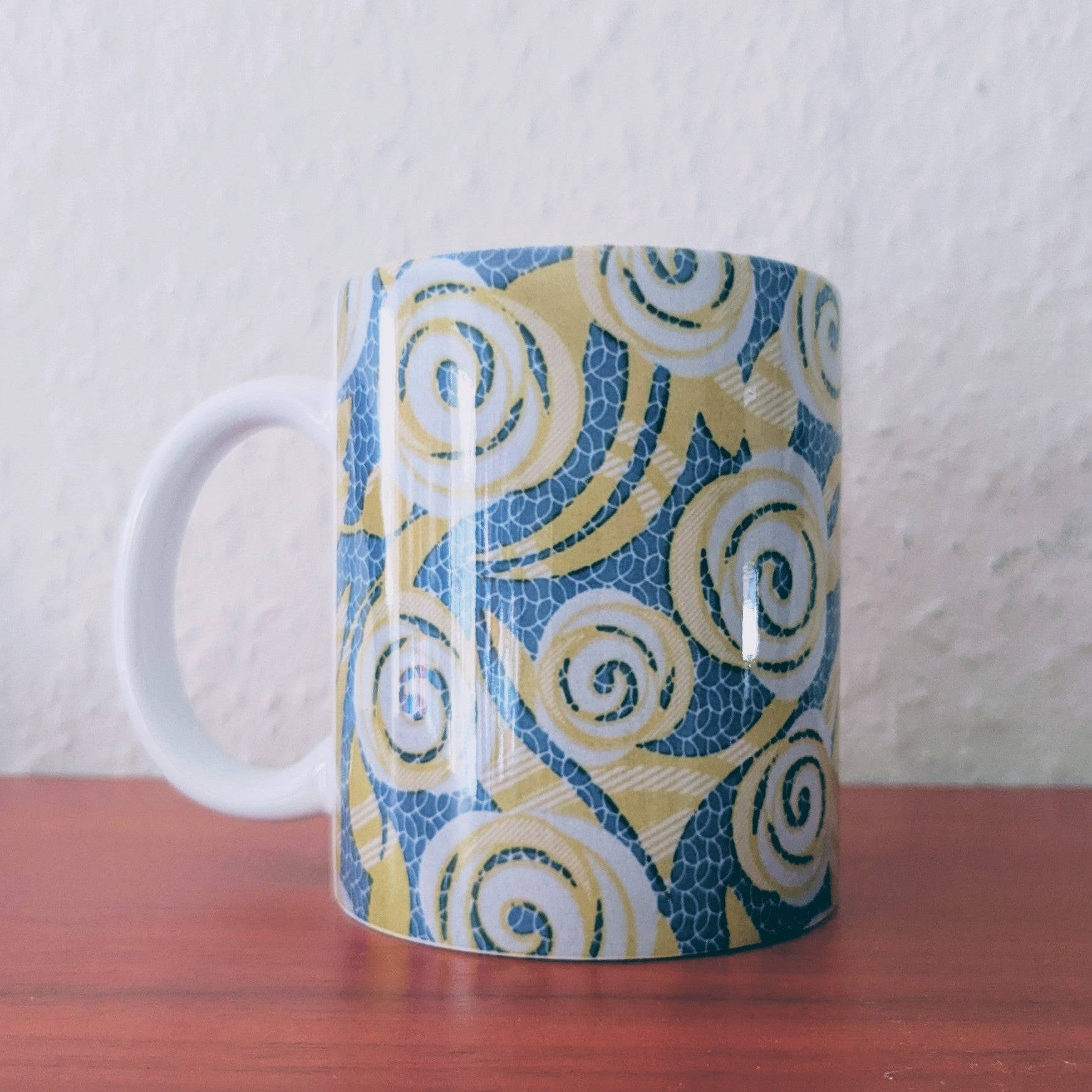 A NEW spring inspired African blue yellow rose mug. It can be used for drinking your coffee, tea, juice etc. or as a decorative storage pot for your pens & pencils.