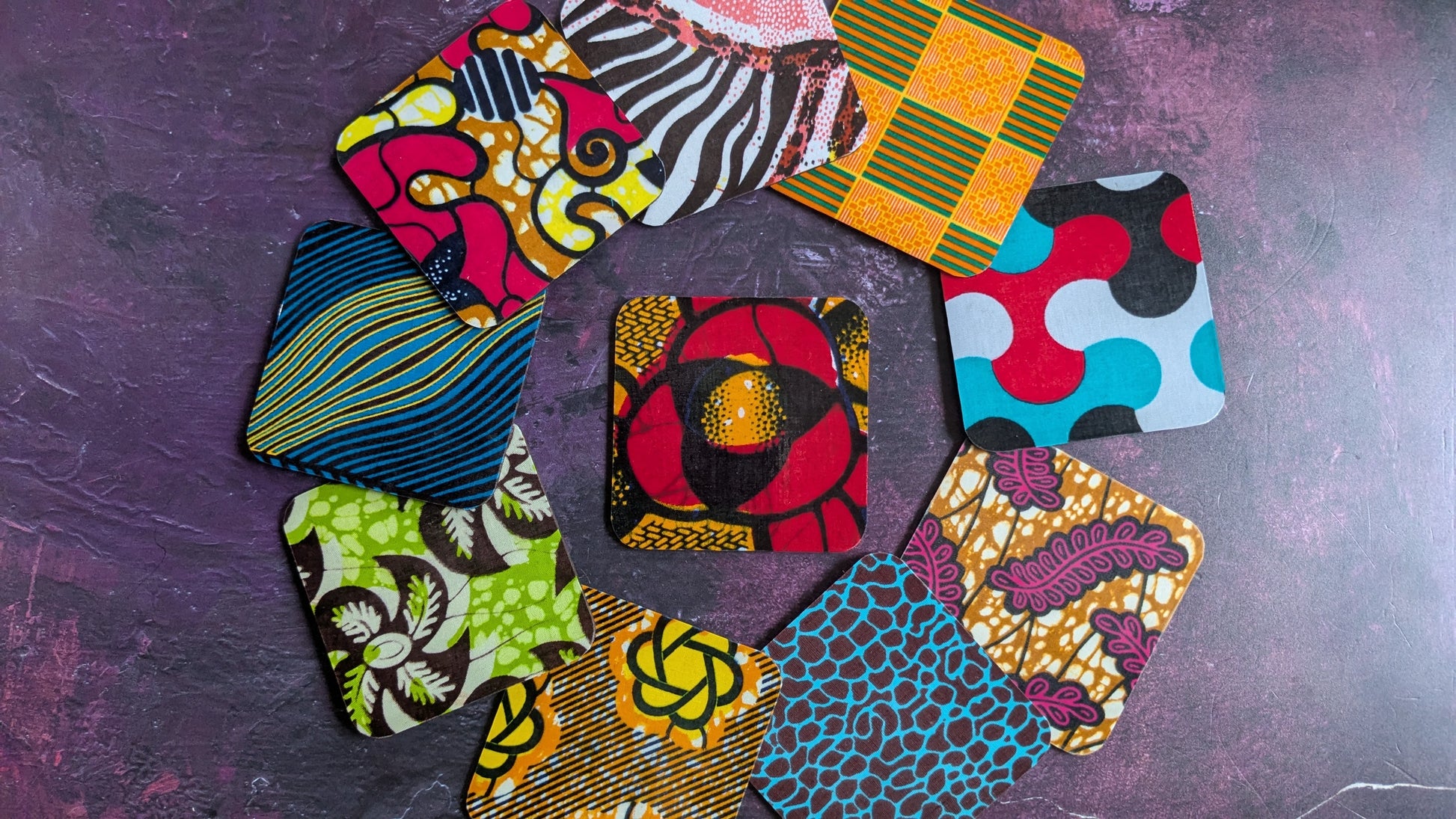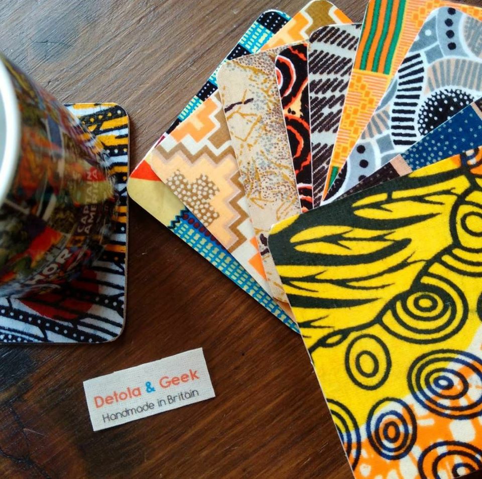 African print coasters mixed set made in a variety of designs and colours by Detola & Geek.