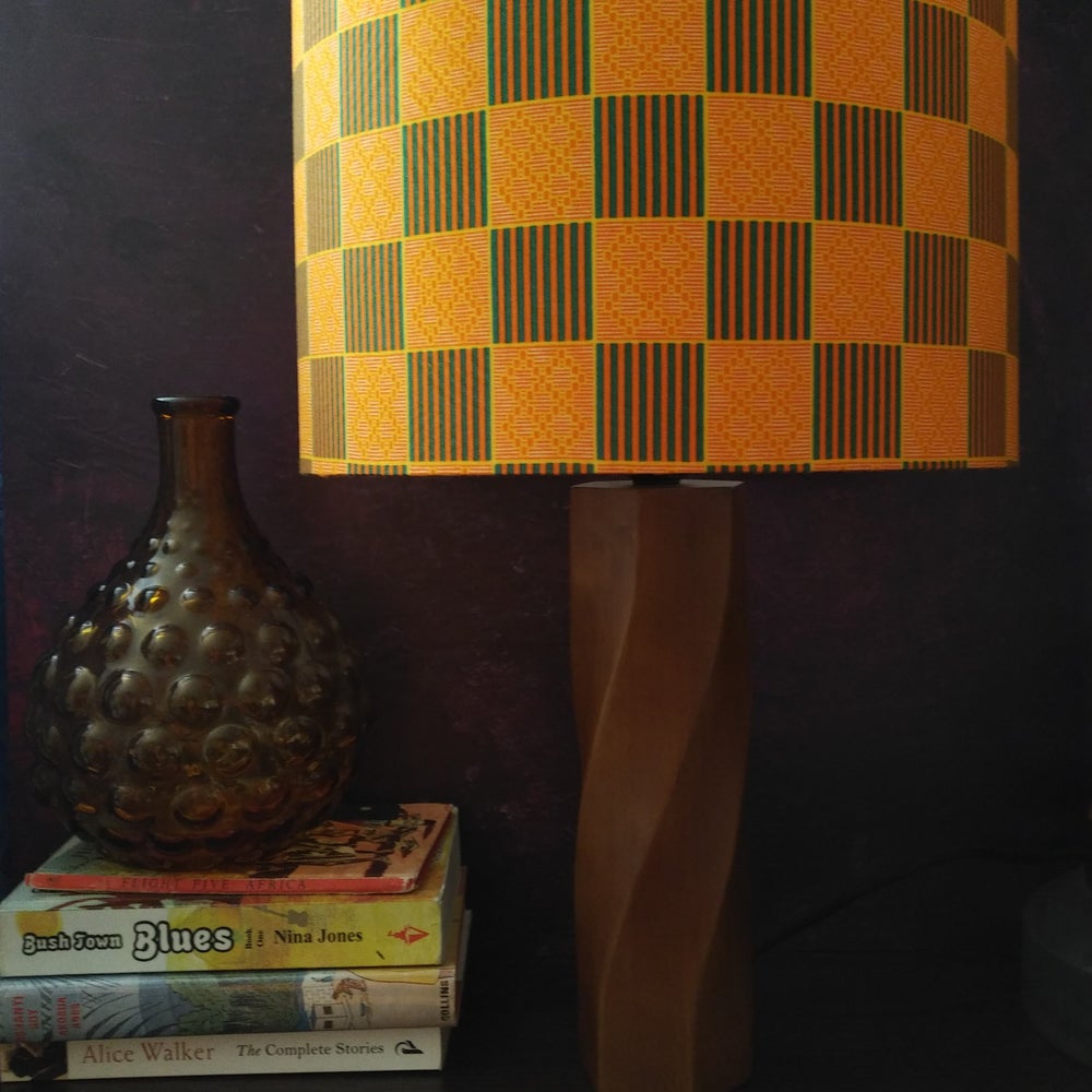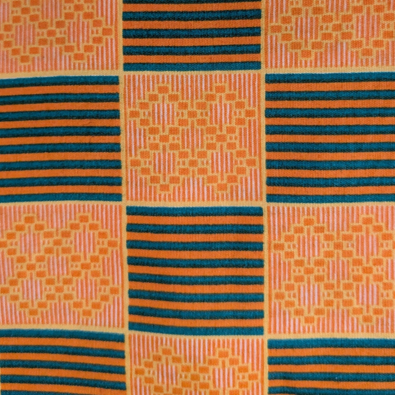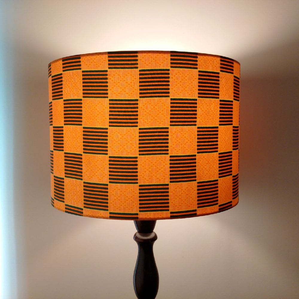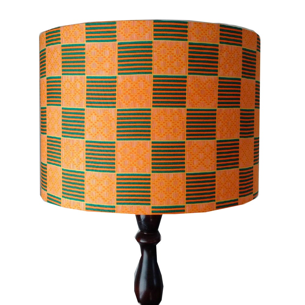 A nice pumpkin orange & green Ghana Kente inspired African Lampshade.