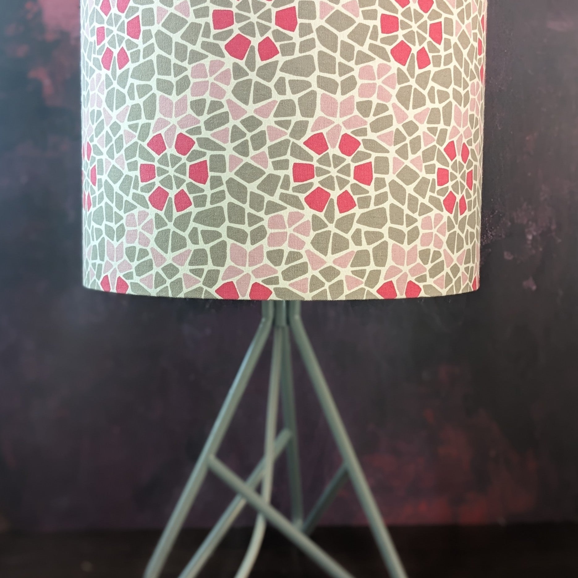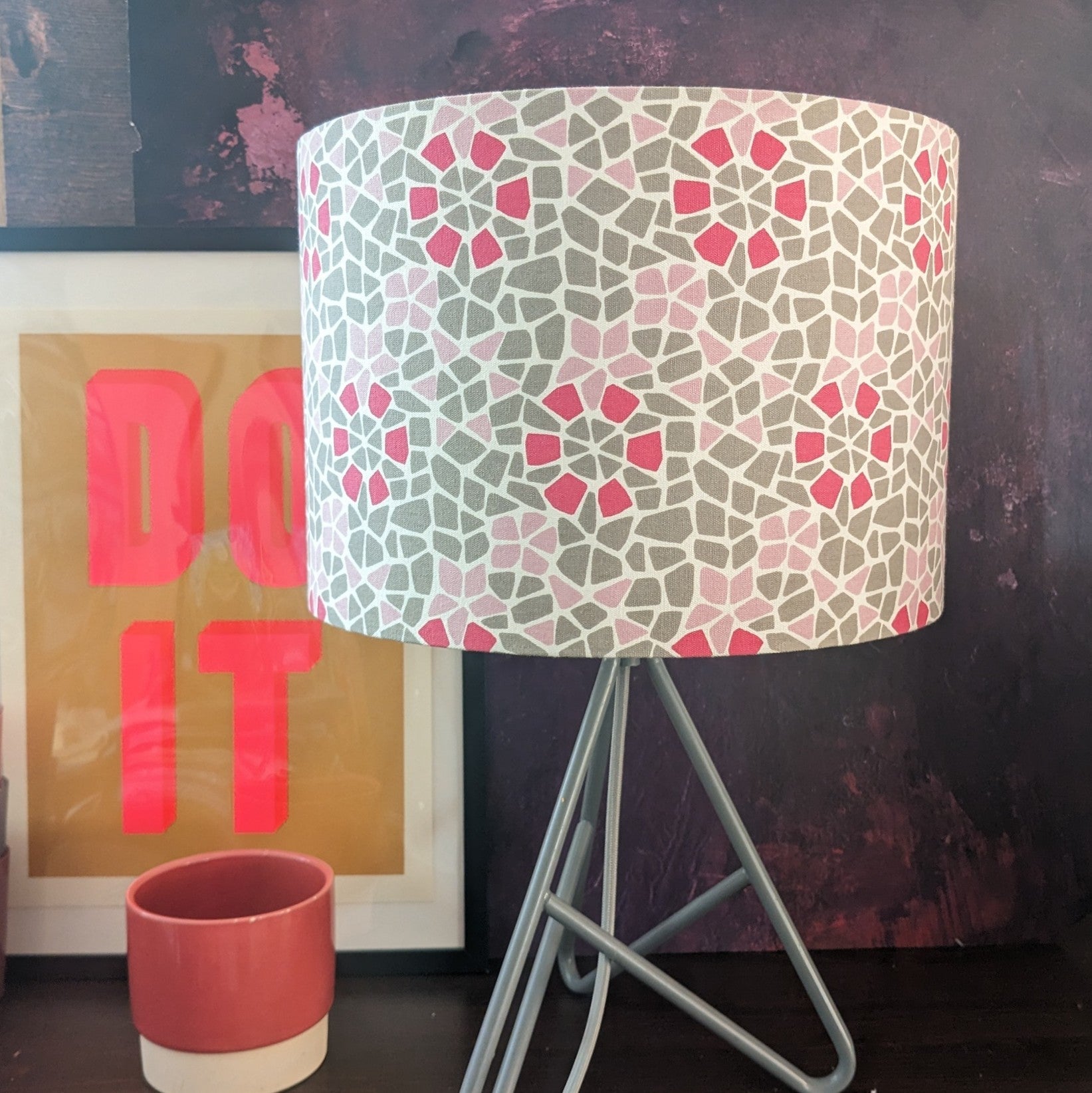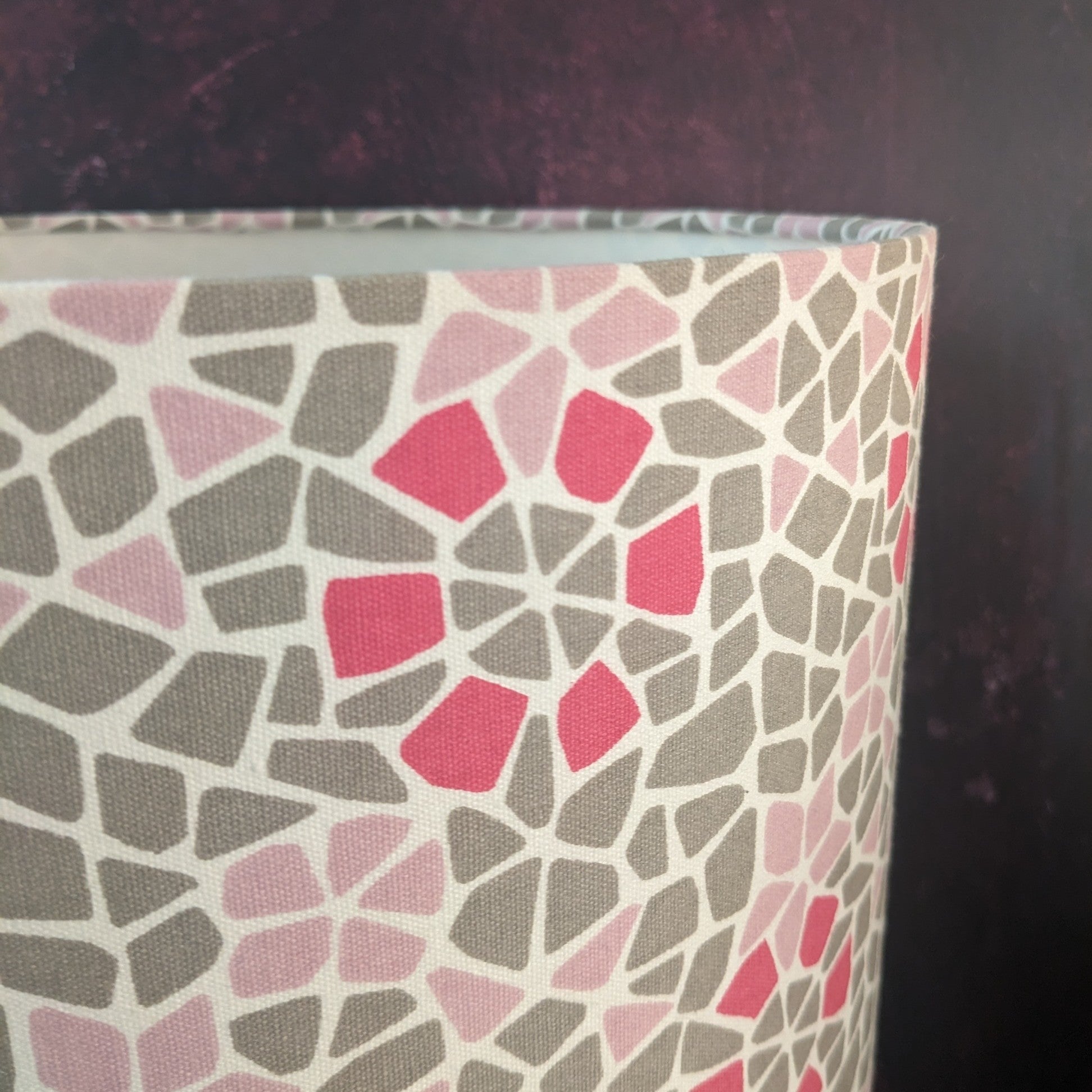 SECONDS Drum Lampshade: geometric pink grey abstract tiles