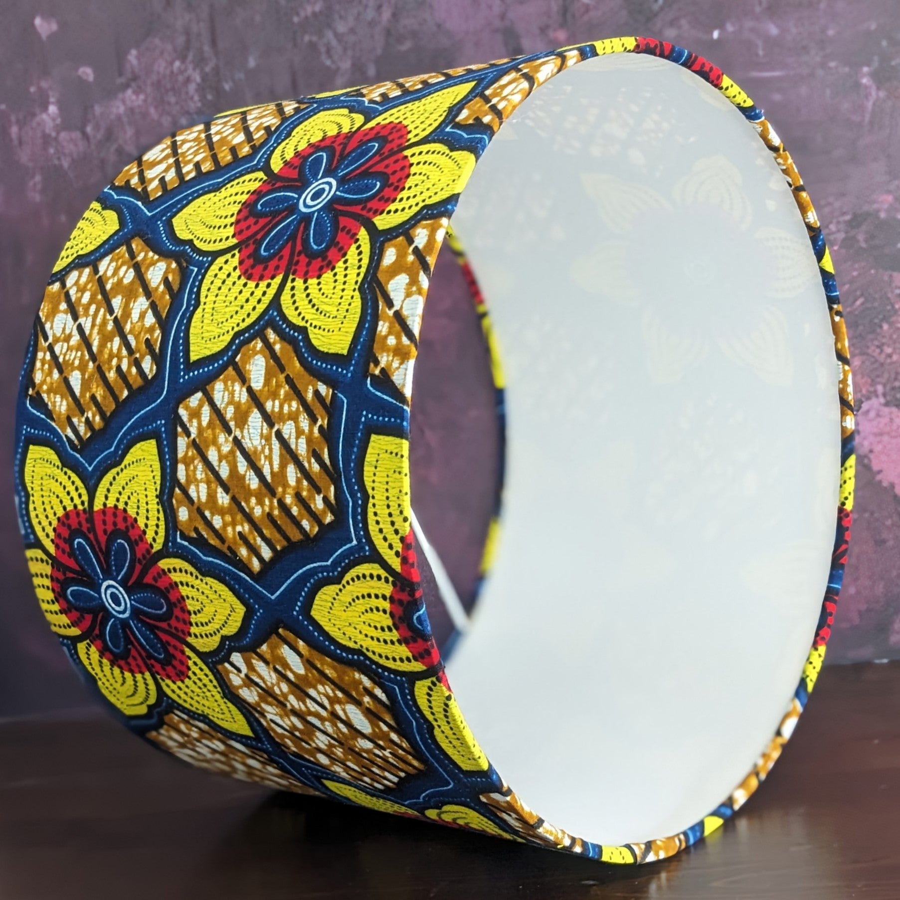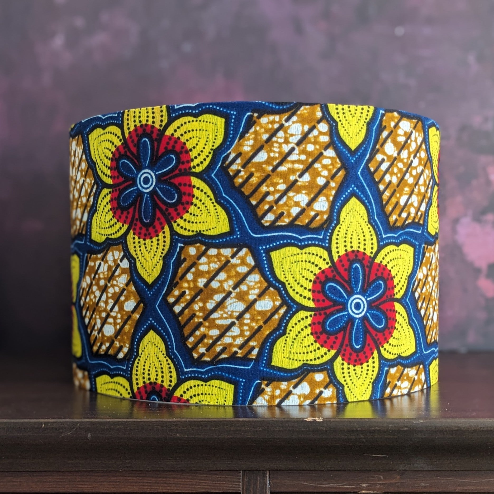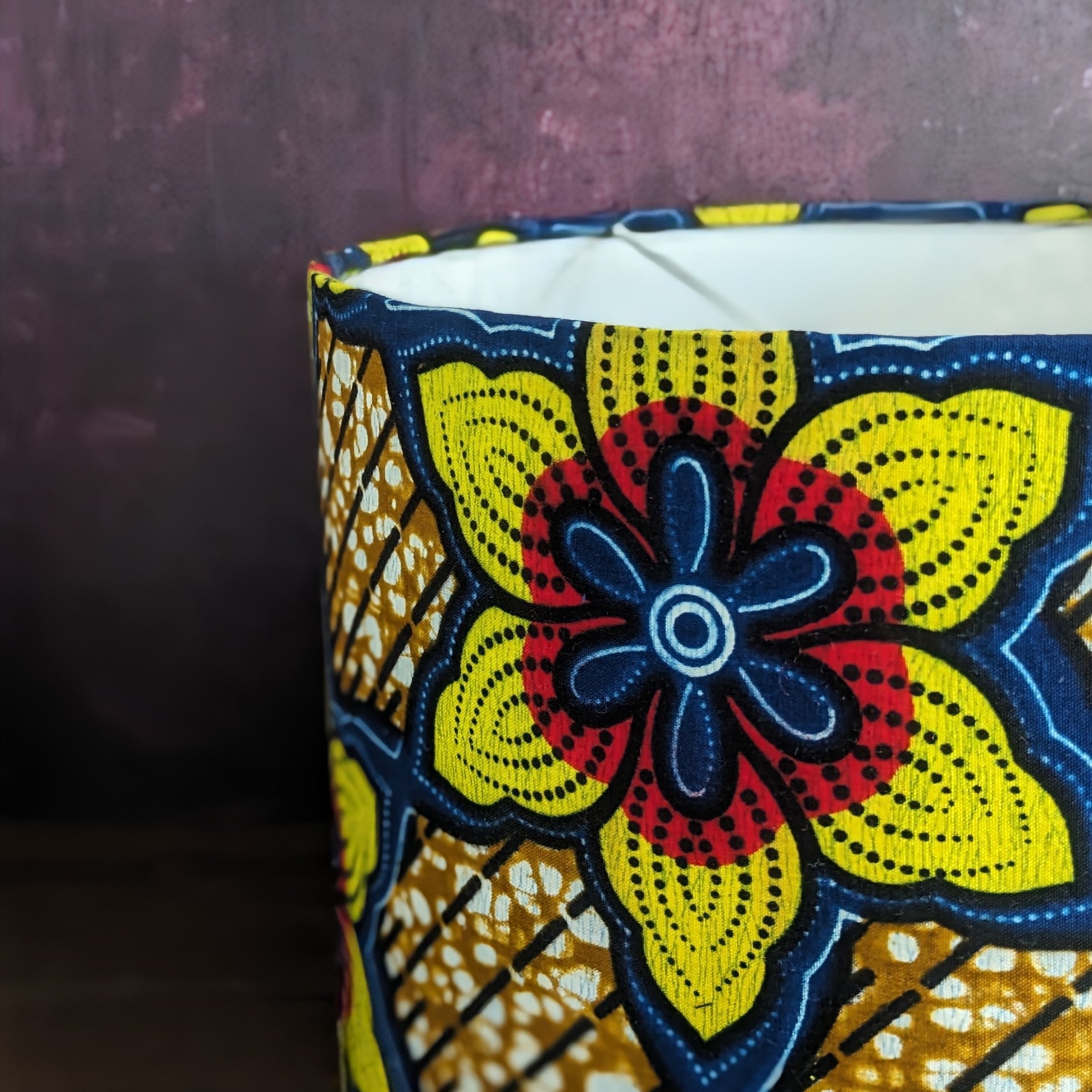 A new stunning tropical jungle handmade African lampshade by Detola and Geek. This lamp shade is made with a gorgeous botanical inspired bold patterned wax print fabric.